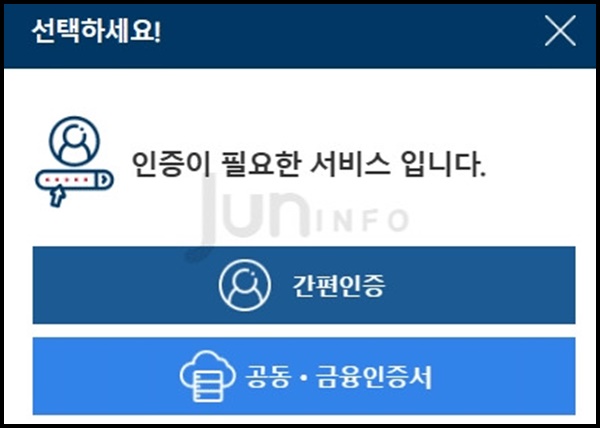 간편인증, 공동, 금융인증서 인증 중 가능한 인증방법으로 인증을 진행해주세요.